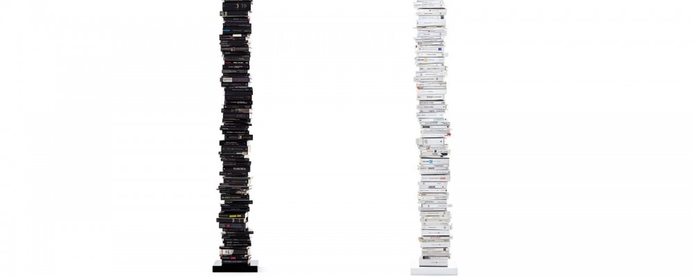 A pensarci bene la libreria Ptolomeo rende ingegnoso e scenografico uno dei modi più semplici per sistemare i libri: impilarli. Sì, perché la esile ma resistente struttura portante permette di ricoverare i tomi uno sull'altro senza rischiare che cadano e tenendoli ben in vista creando scenografiche strutture.