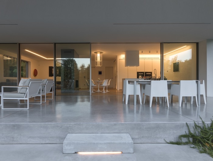 Spazi fluidi e luminosi in una villa a Padova, dove design e comfort dialogano con l’esterno.